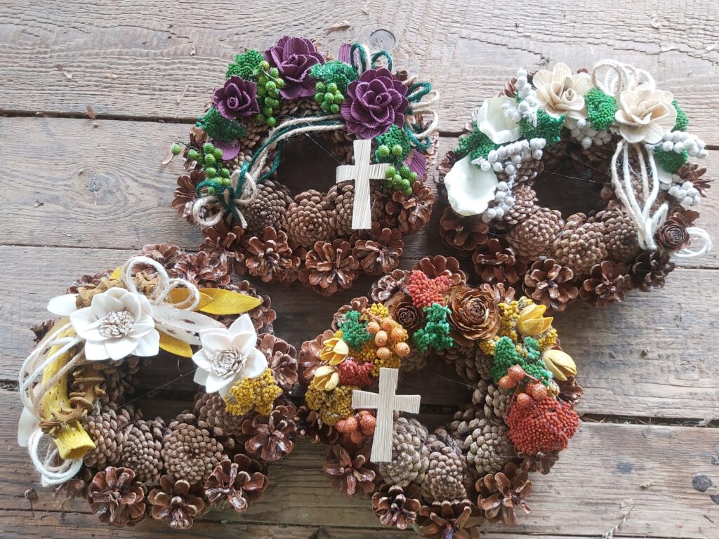 Připravujeme: šiškové, mechové, slámové věnečky a srdce k Dušičkám. Brzy v prodeji u nás.