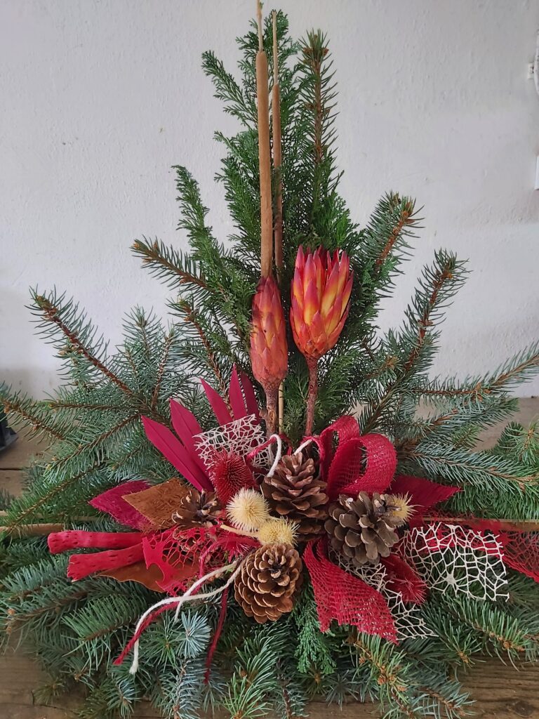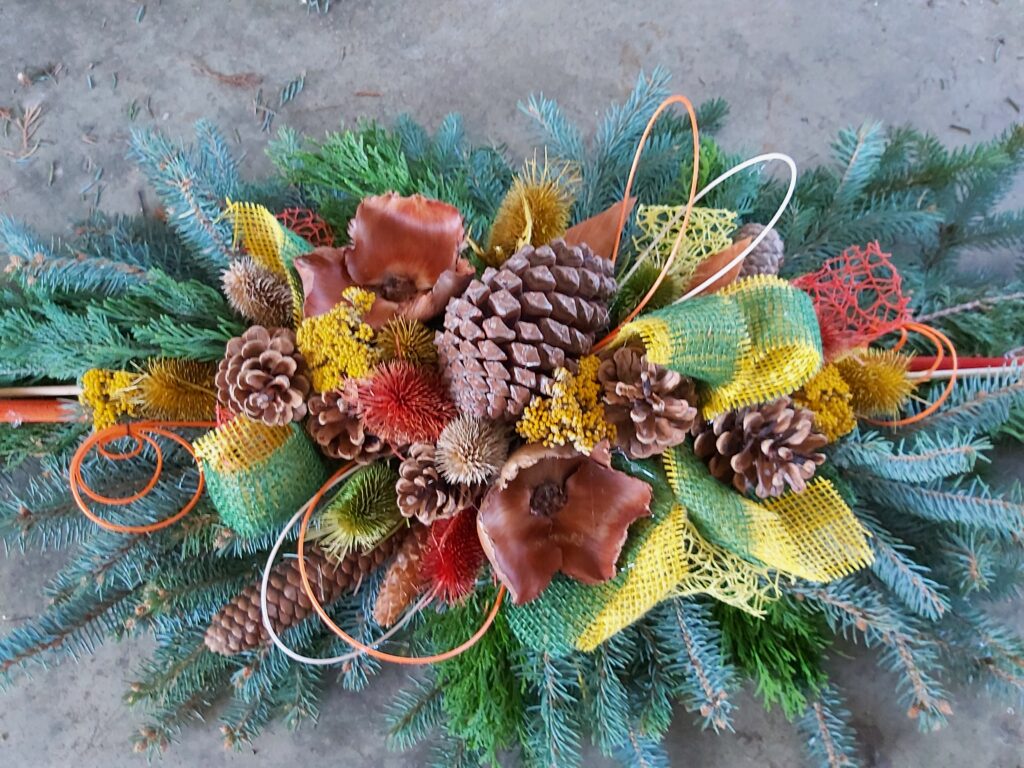 V nabídce máme věnce průměrů 30, 40, 50 a 60 cm, materiálem je stříbrný smrk nebo jedle vznešená (abies nobilis). Možnost zdobení s hlavou nebo po obvodu věnce, klasickými zdejšími materiály (šišky, bodláky, statice tatarika, achillea apod.) nebo s exotickými plody a přízdobami. Vždy bohatě zdobeno přírodními materiály, lze připravit v různém barevném provedení: do bíla, žluta, oranžova, červené barvy, do zelena. Lze i vzájemné kombinace barev, možno doplnit stuhou nebo trikolorou. Dle dohody můžeme připravit i vypichovaný věnec s povoskovanými květy (chryzantémy) nebo lesní.