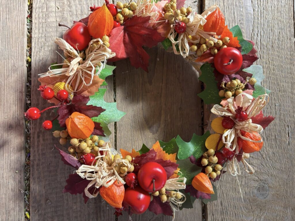 Máme také připraveny trvanlivé podzimní věnečky, vhodné například na vchodové dveře: