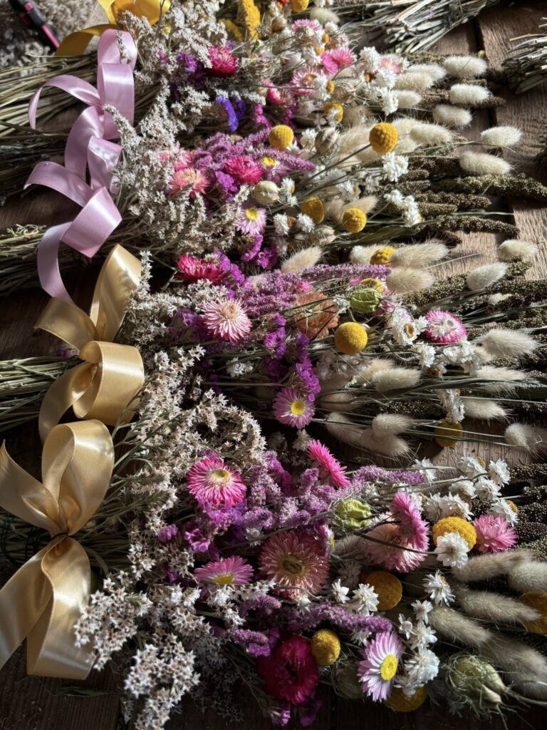 Sušené kytičky různých druhů a velikostí.